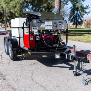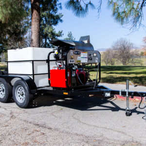 The larger 330-gallon water tank supports longer run times, while the tandem axle trailer provides excellent stability and control during transport and operation.